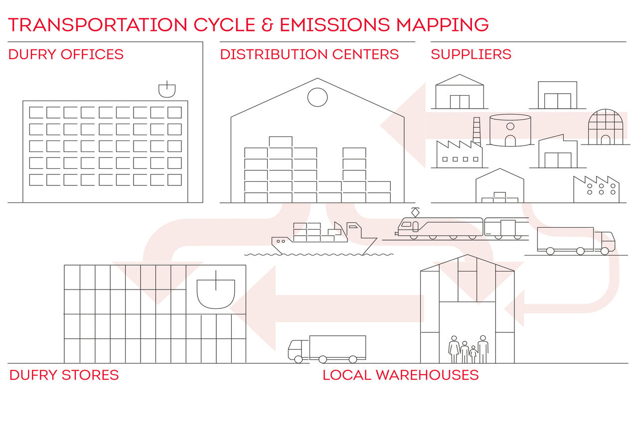 The vast majority of shipments of goods from the supplier’s site to Dufry’s Distribution Centers is excluded from the assessment, as these emissions lie within the ESG responsibility of the suppliers. As part of its own emission reduction targets, Dufry actively engages with suppliers to discuss and encourage footprint reduction opportunities.